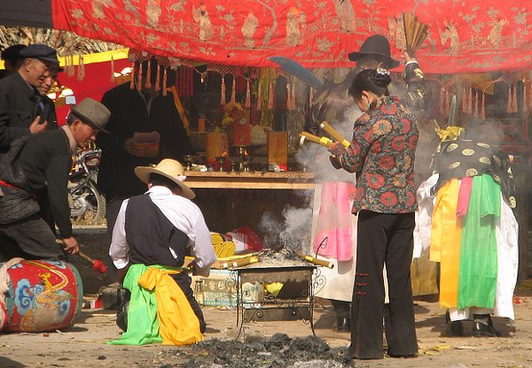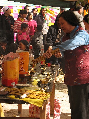 PlowingThe festival is an annual cultural event. As far as we could tell, it consists of burning incense, dancing and chanting, and the use of wine and bread brought by participants.